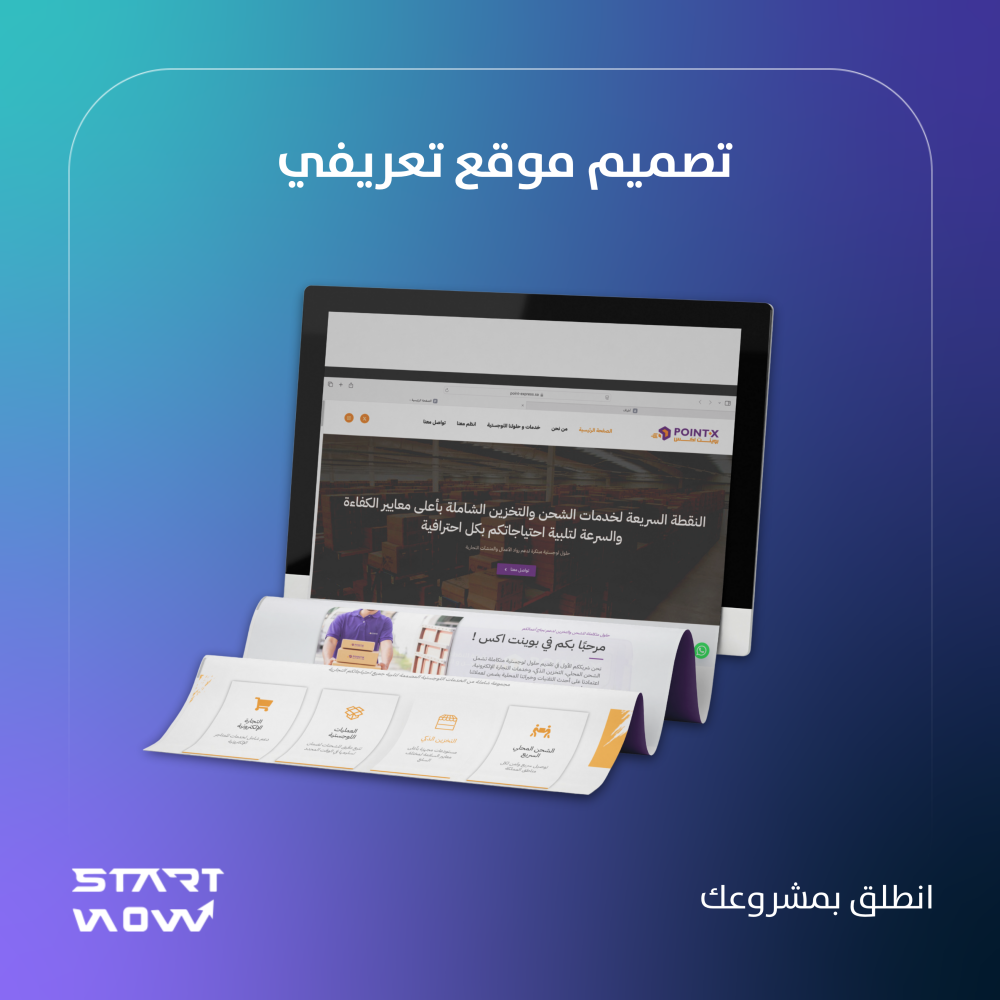 في "ستارت ناو" للتصميم والتسويق الرقمي، نقدم لك خدمة تصميم وتطوير موقع إلكتروني تعريفي يعكس هوية نشاطك التجاري باحترافية، ويُظهر علامتك التجارية بالشكل الذي تستحقه. نركز على التفاصيل التي تُعزز من ثقة الزوار وتحولهم إلى عملاء فعليين.